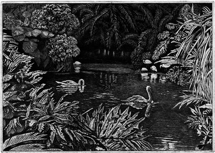 Discovery Island in Florida - etching with sugar lift and aquatint © Kris Blodget, 1999